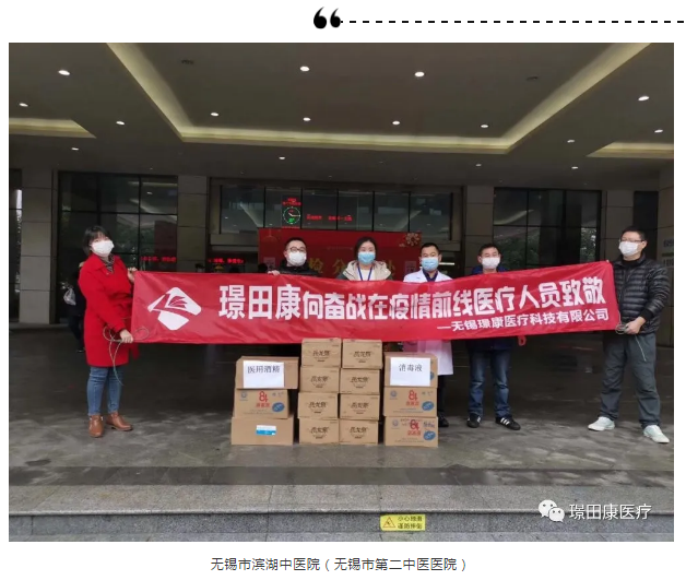 疫情當(dāng)前,無錫璟田康醫(yī)療科技有限公司,在做好企業(yè)防控防疫的本職工作的同時,盡自己的所能向奮戰(zhàn)在戰(zhàn)役一線的醫(yī)護(hù)人員致敬。并于3月9日上午為無錫市濱湖中醫(yī)院(無錫市第二中醫(yī)醫(yī)院)送去了礦泉水、84消毒液、醫(yī)用酒精等防疫物資,用實際行動來共同抗擊疫情,陳陽副院長和周科長熱情的接待公司一行